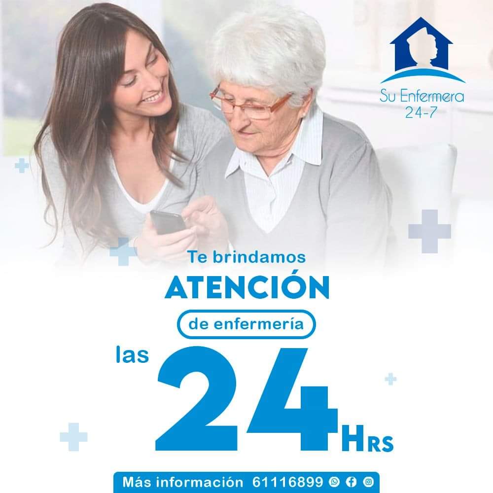 Su Enfermera 24-7, con más de 30 años de experiencia, brindamos atención especializada a pacientes en casa o en el hospital. Nuestro equipo profesional está comprometido con el cuidado integral, ofreciendo servicios como atención al adulto mayor encamado, administración de medicamentos, limpieza de traqueostomías y colostomías, curaciones de heridas complejas, cuidados paliativos, y más. Además, contamos con servicios postquirúrgicos, cuidado de recién nacidos, terapia física y alquiler de equipos médicos. Atendemos dentro y fuera del país, asegurando calidad, humanidad y confianza las 24 horas. ¡Estamos siempre a tu lado!.